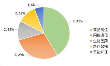 近三年來廣東省發(fā)明、實用新型項目獎金主要涵蓋的領域為普通商品制造占比41%,網絡通信、生物醫(yī)藥、醫(yī)療器械、節(jié)能環(huán)保。
